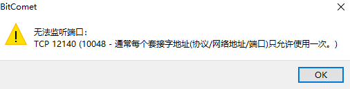 弹窗看起来是端口被电脑其它应用使用了