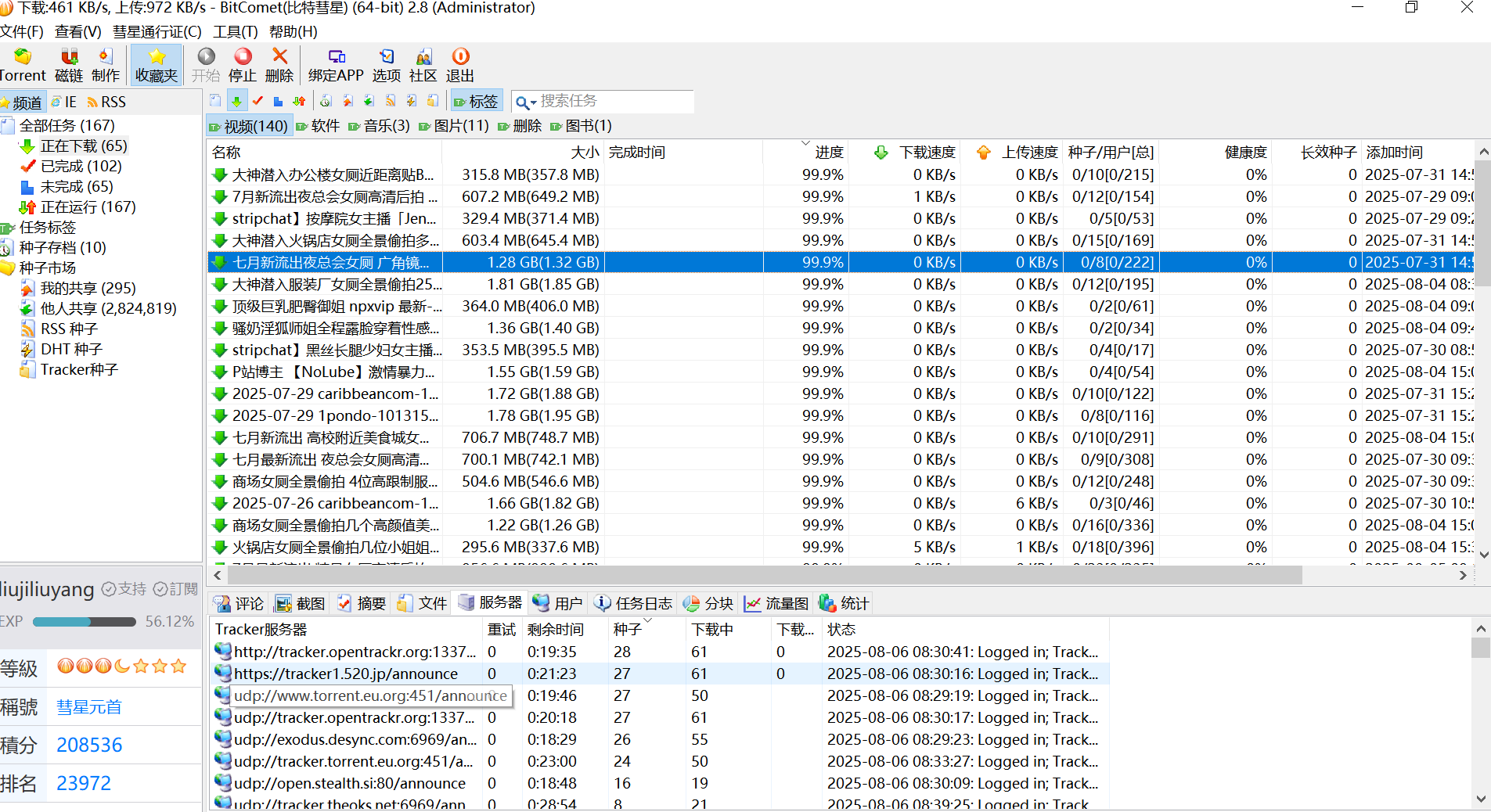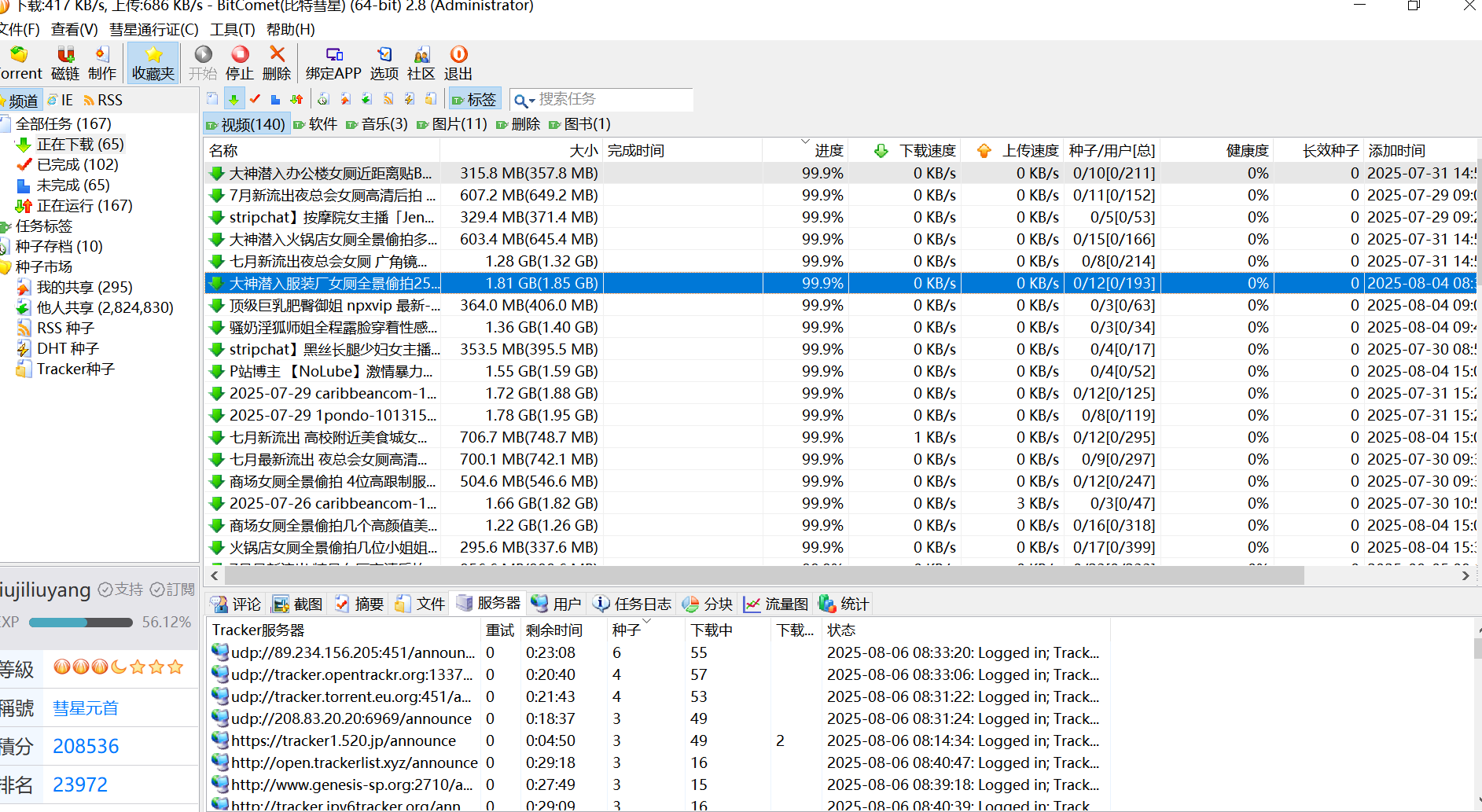 好多下载到99.9卡住的,关键是服务器信息里显示有种子,多的一二十个少的也有一两个,就是一只卡在99.9,是资源的问题还是网络不畅通的原因还是软件的原因你们知道吗?