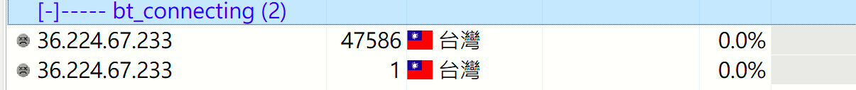 為什麼他們連接了那麼久, 只差 0.3% 卻永遠也無法下載呢? 另外還有一個加為朋友的, 也一樣, 還不時丟出1KB(不知道他怎麼做到的?), 但他不在截圖中, 而且他們也沒被視為吸血. 整查時間都連接很久了.