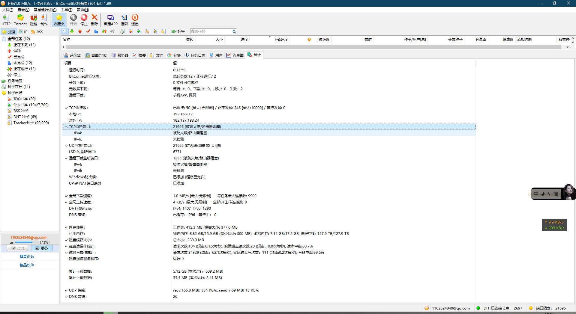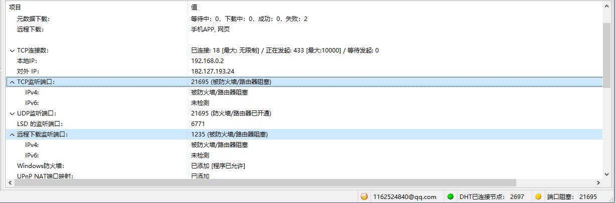 | 远程下载监听端口: | 1235 (被防火墙/路由器阻塞) |