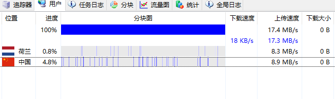 谢谢跟进,这个种子能跑得动的,国外连接数一多速度总和就过1.2了,最快能拉满,然后连接数掉了就慢慢趋向于1.2,之后再连接数上去还会再提升,我看到有个哥儿们之前发帖和我有相同问题。就像那个帖子下面的老哥所说可能是我和下载方运营商之间的问题,一部分用户全部加起来我最多只能给到1.2M,总之就是很微妙的一个数字,是上传带宽的10%。