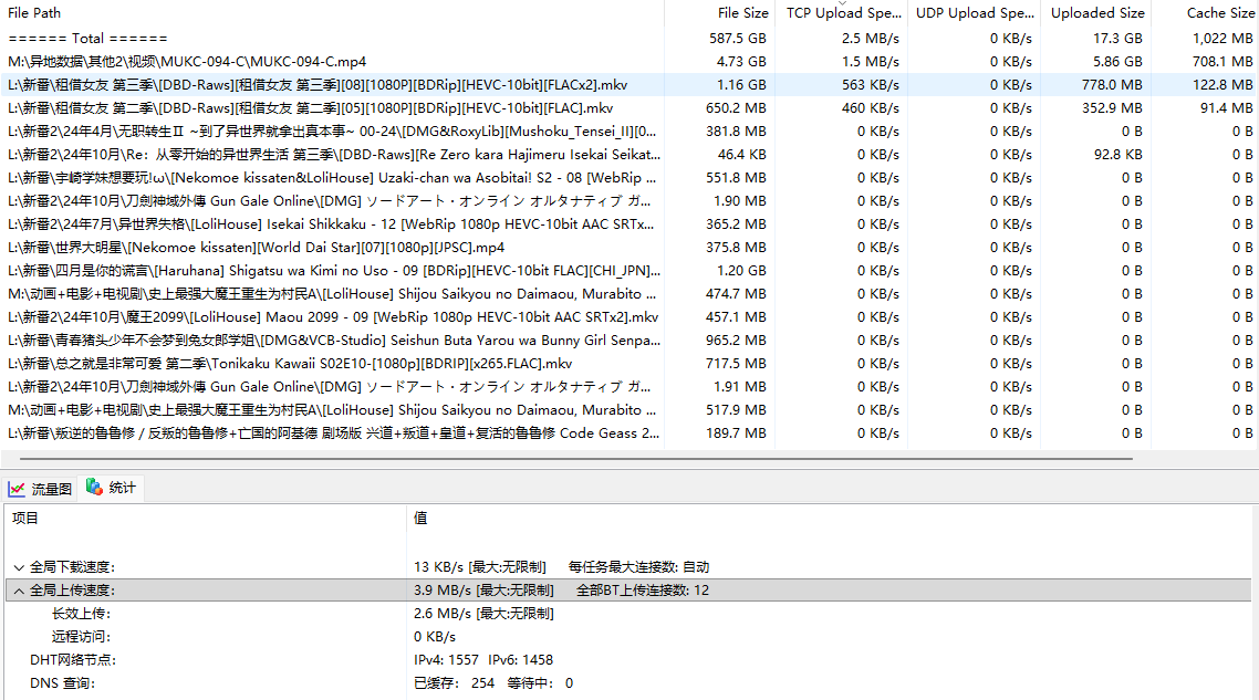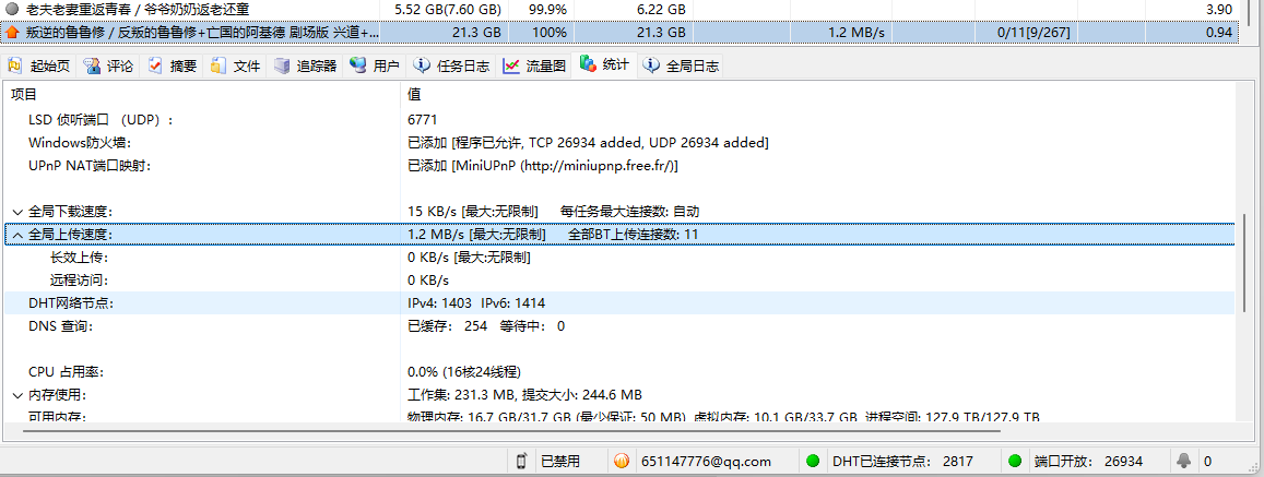 所以我觉得可能是长效做种限制了BT网络的上传的速度,因此我尝试关闭了设置内的长效种子,但仍然无法将给到用户的上传速度提升到1.2M以上,还有其他可能的原因么?