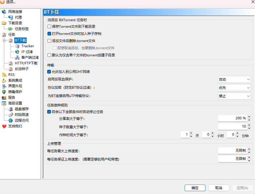 优先上传BT网络,在BT网络空闲的情况下才会触发长效上传,或者你为每个单独的任务进行关闭