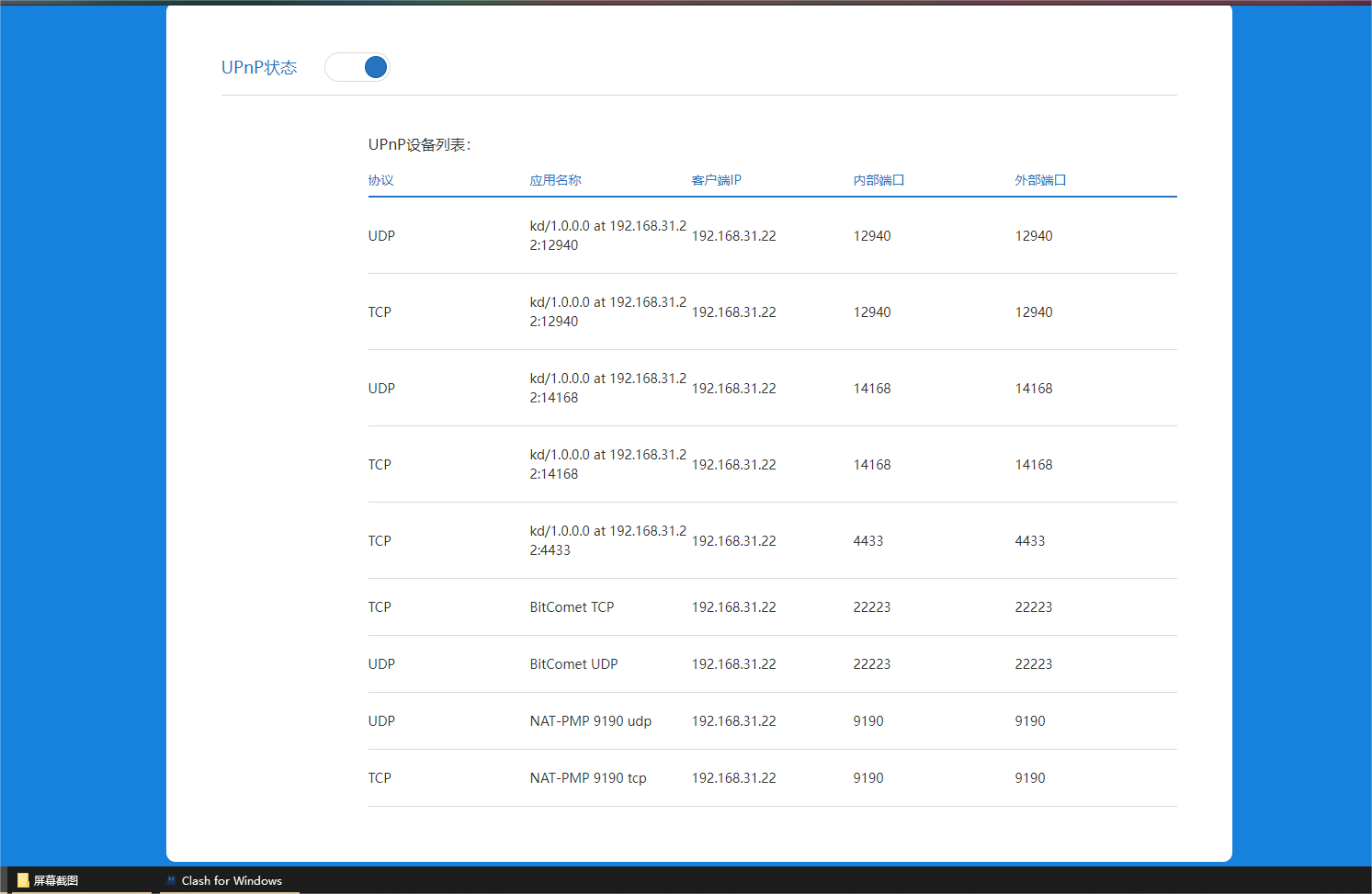 下图图是原来去年设置完双绿灯后截的图,虽然是端口受限锥形NAT,但是是双绿灯,百兆宽带能跑满。