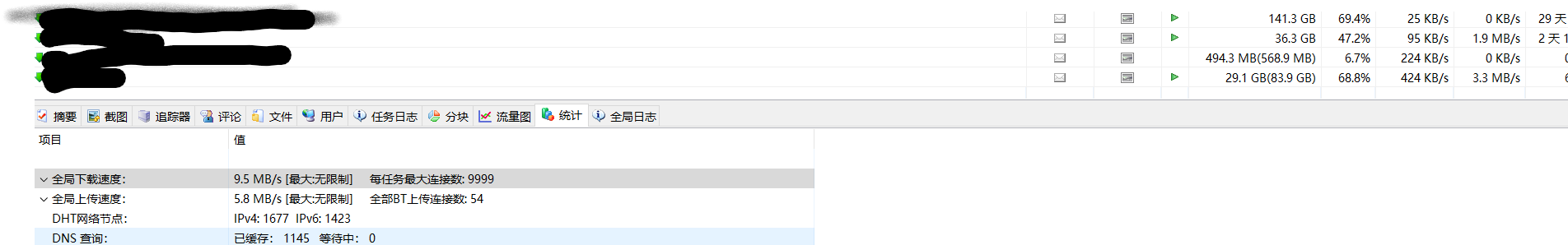 这边发现全局下载速度和具体文件的下载速度差非常多,从高到低排序顶多加起来也就2M不到吧,但是全局速度却拉到了最高20M去了,大家有啥头绪吗