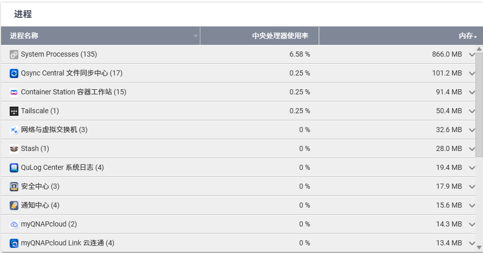 我的cpu是一颗赛扬4线程4g cpu,打开进程基本应用网络交换机,stash播放视频,docker工作站,taiscale用来外地打开服务,系统目录里面qbitorrent占271.6M内存,20的clash等等。这个情况我肯定不能开比特彗星了,彗星内存使用更高。