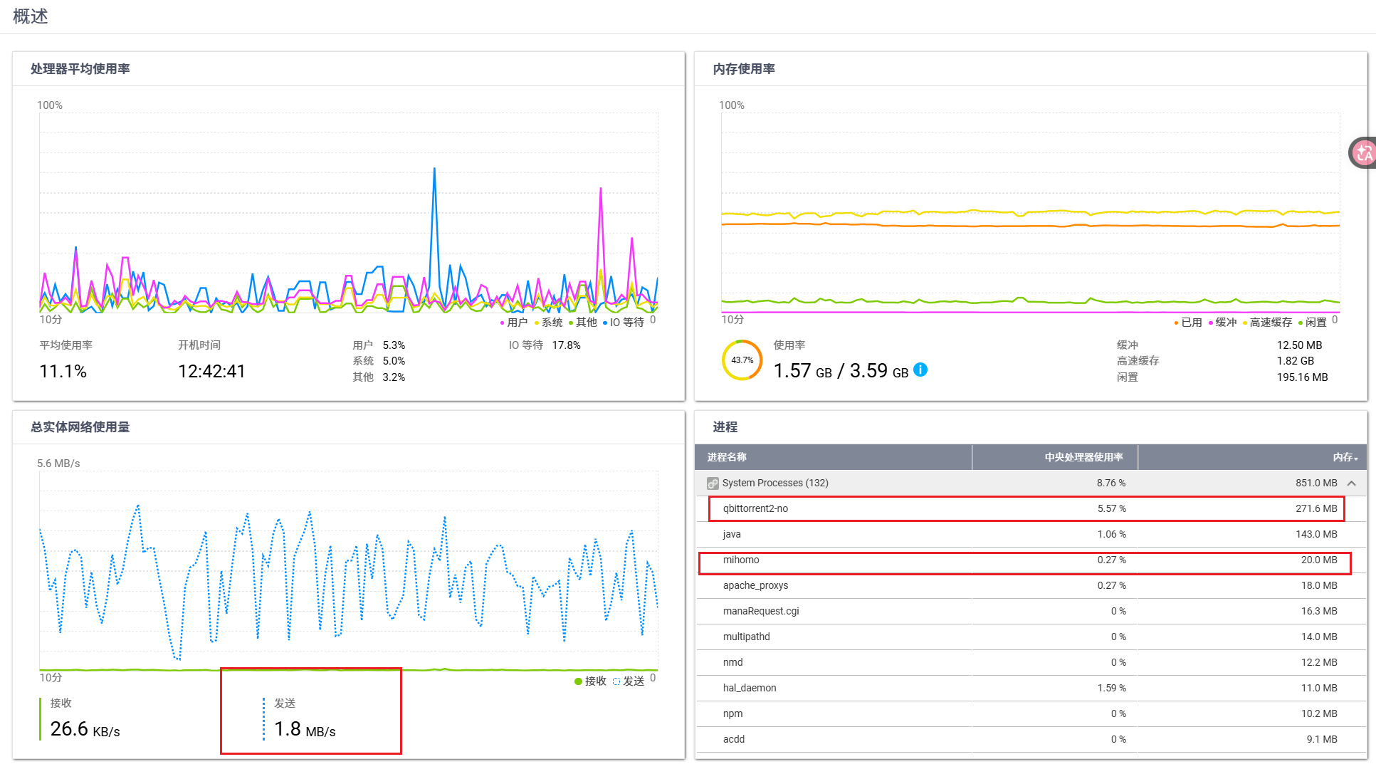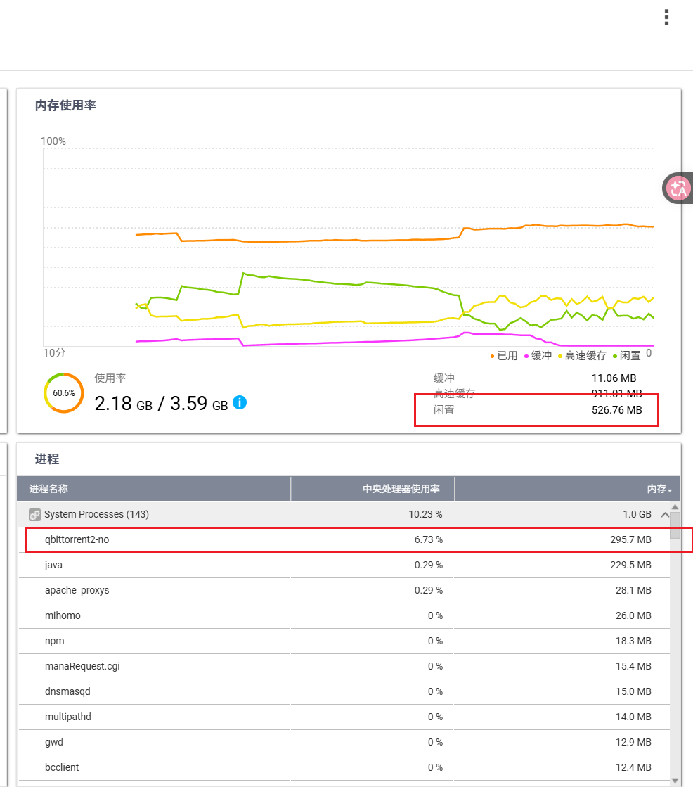 有点尴尬,确实不是比特彗星的锅,它的CPU占30%,运行内存60%,但是还是炒豆子声音非常大,我没设置过nas隔天重启,好像有这个原因,nas提示我运行内存过高要不要重启,,