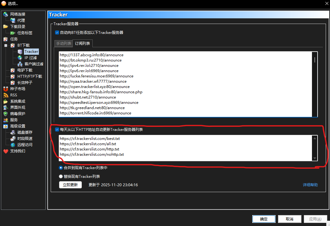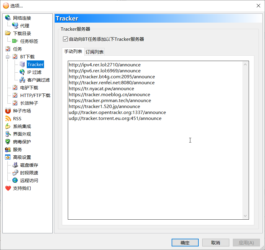 请问我在此设置多个Tracker服务器url,软件是否支持这样做? 这样做是否合理? 谢谢大佬!