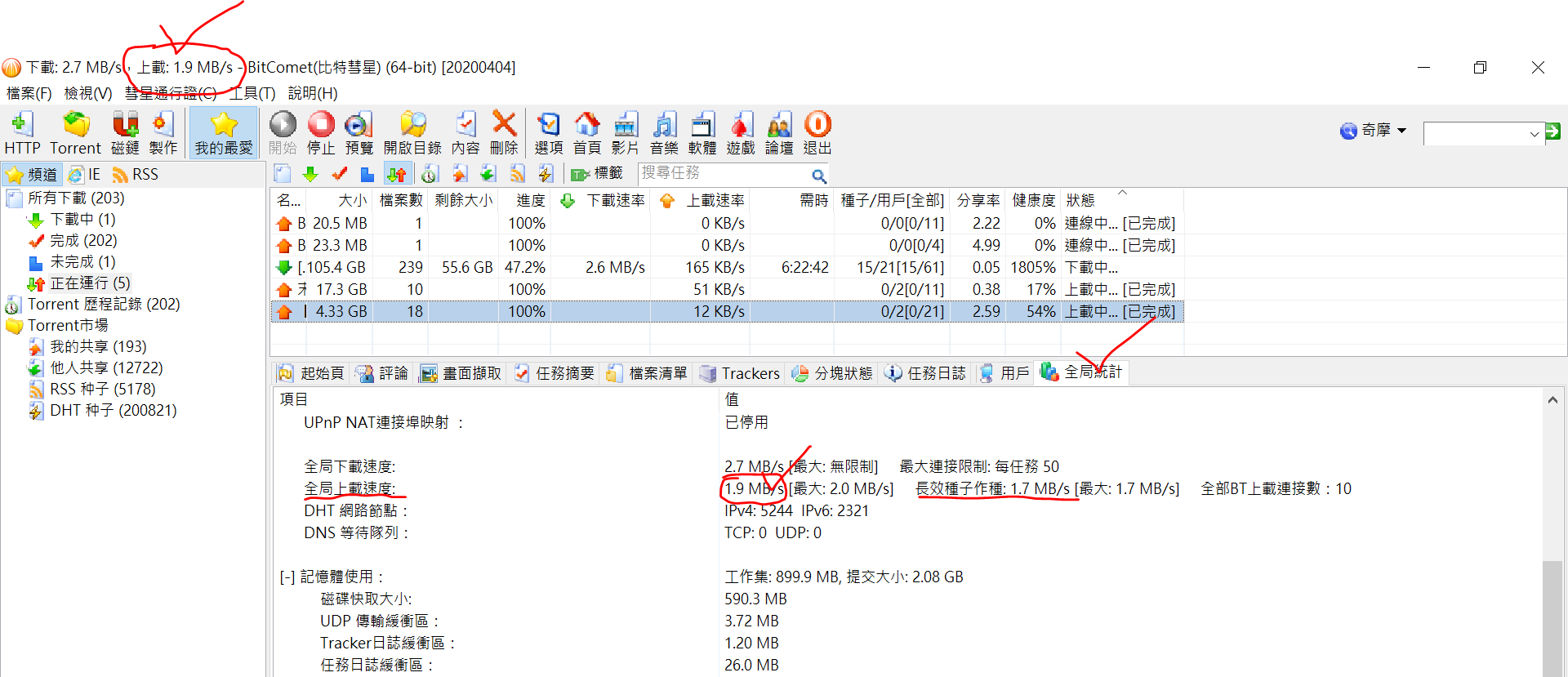 总上传好几兆每秒要看全局統計… 有可能是長效上傳(有積分)