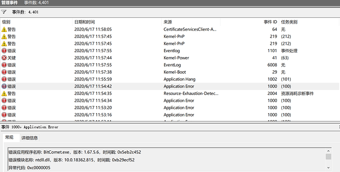 错误应用程序名称: BitComet.exe,版本: 1.67.5.6,时间戳: 0x5eb2c452