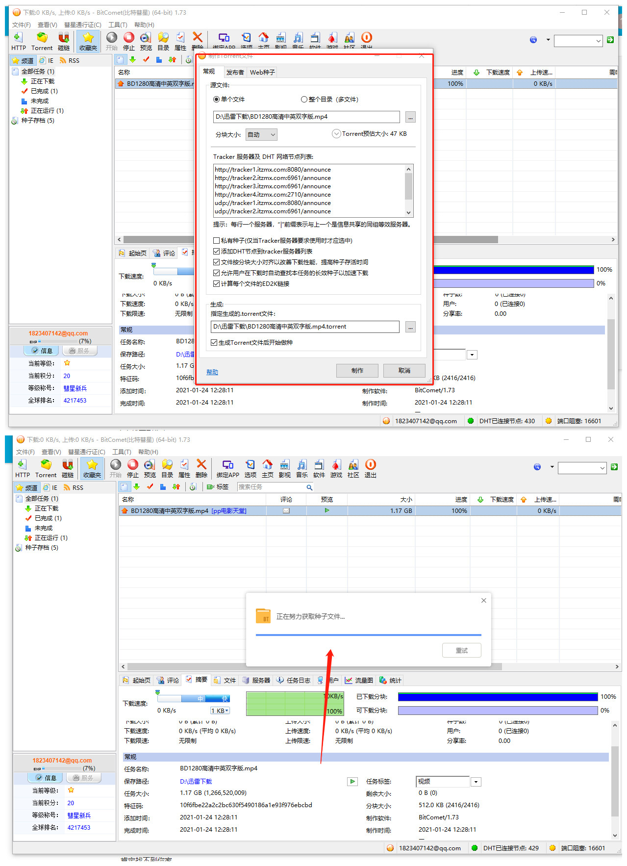 我不知道为什么我电脑做出来的种子分享出去,都下载不了,不管用百度网盘还是迅雷都一样。如果我用腾讯云服务器的Win系统然后去下载比特慧星制作种子可以吗?