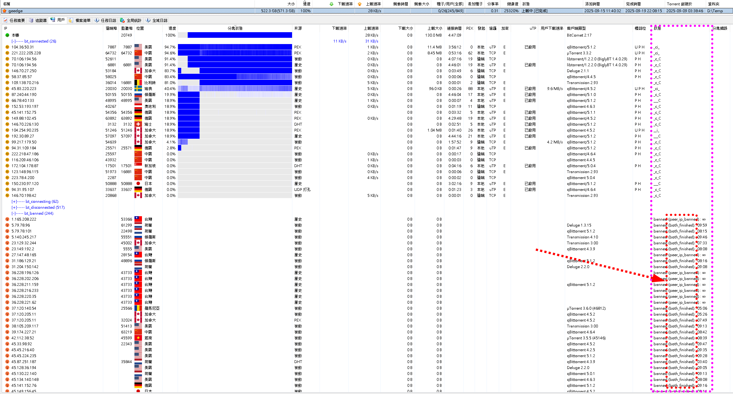 但是下载完开始做种之后,能链接上的IP全部ban了,这是什么情况?请大佬们帮帮小白吧