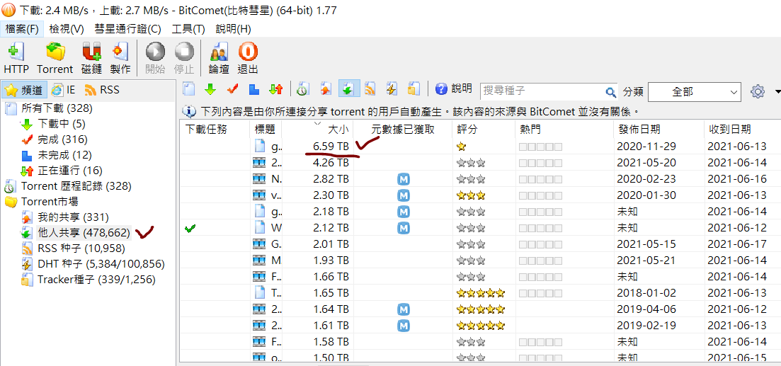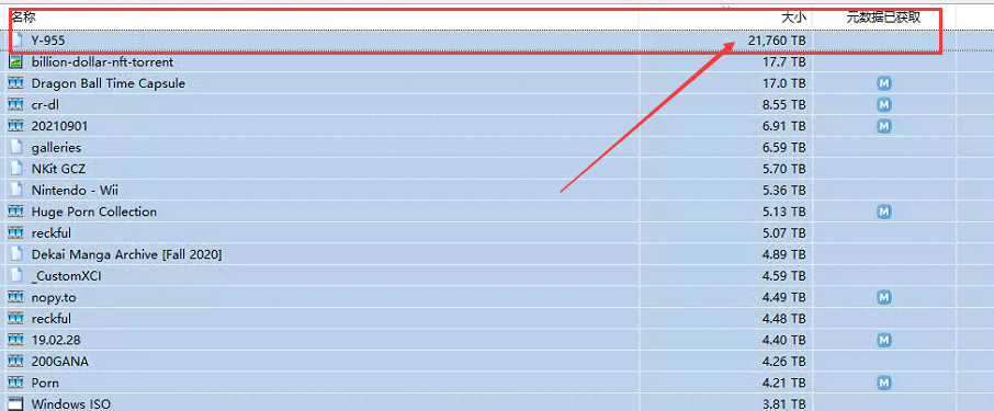 哈哈哈… 這未免也太大了吧? 感覺是彗星計算的 bug, 您可以查看一下檔案內容物是否是合理的? 或者請彗星工作人員, 查看一下是否正常, 自己也蠻好奇這神奇的種子…