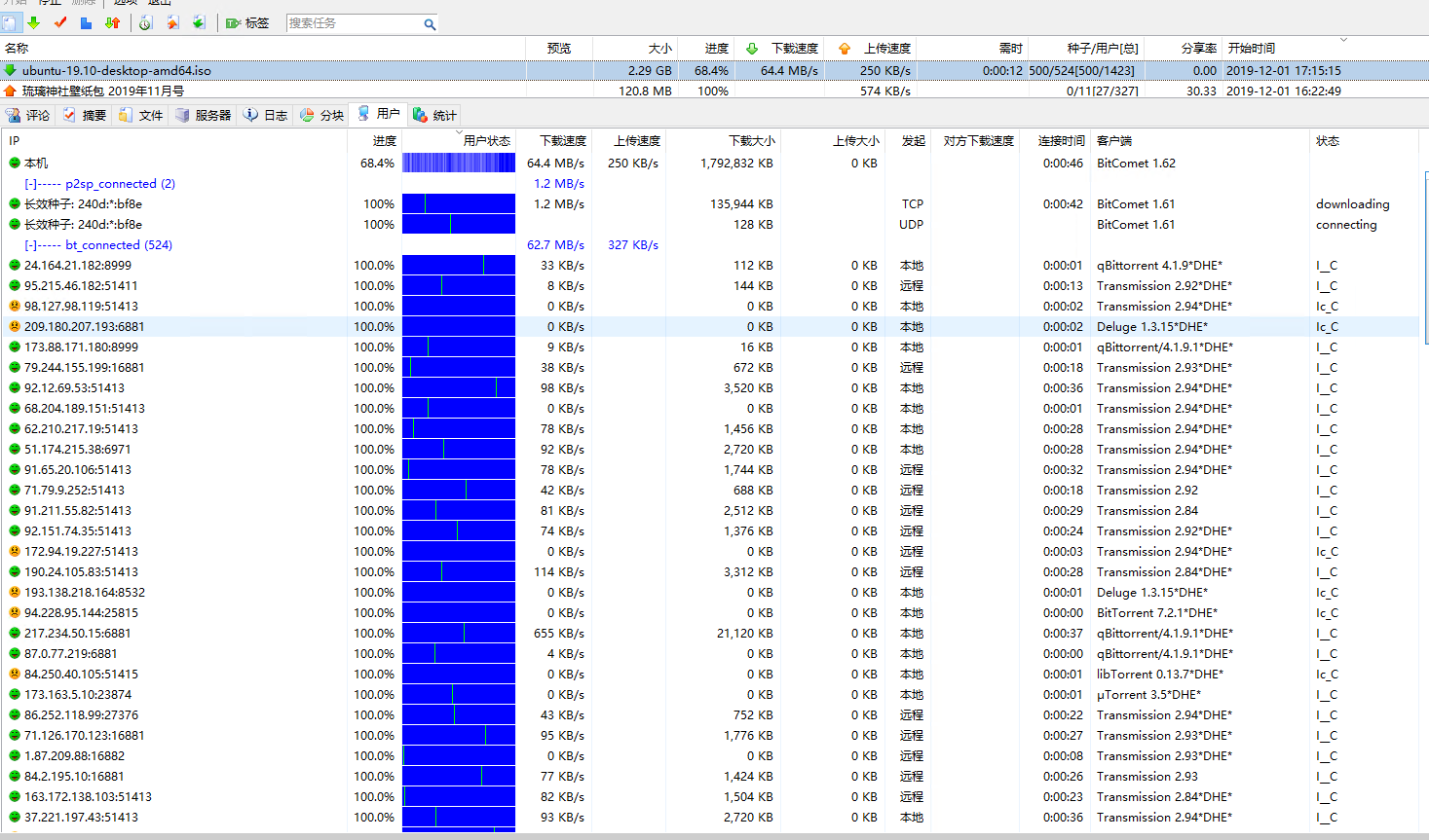 你注意观察下用户列表 发起是不是tcp状态的长效种子 长效用的是私有协议 点对点不是bt p2p协议 可能和这个有关系