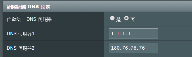 目前路由器設置 1111 + 百度dns