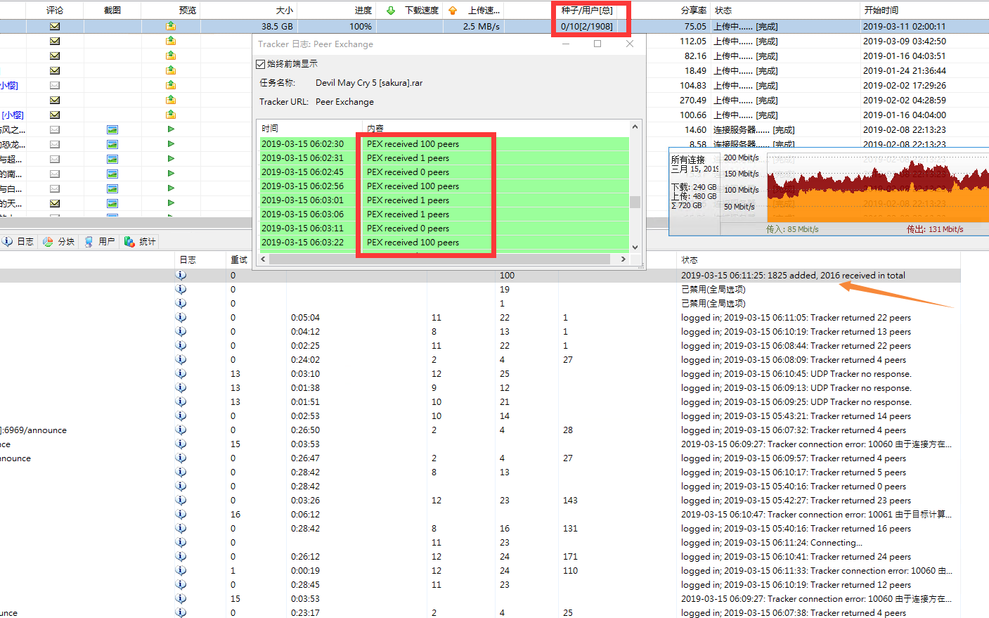 软件退出重开,应该删除历史的用户交换peer信息吧。让他重新获取,不然越来越多几万个peer列表,一直反复尝试不存在的peer,根本请不掉。