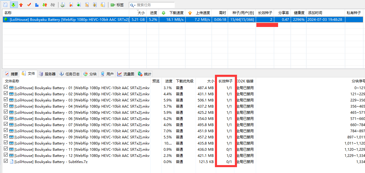长效种子针对的是种子内的文件,而不是种子
