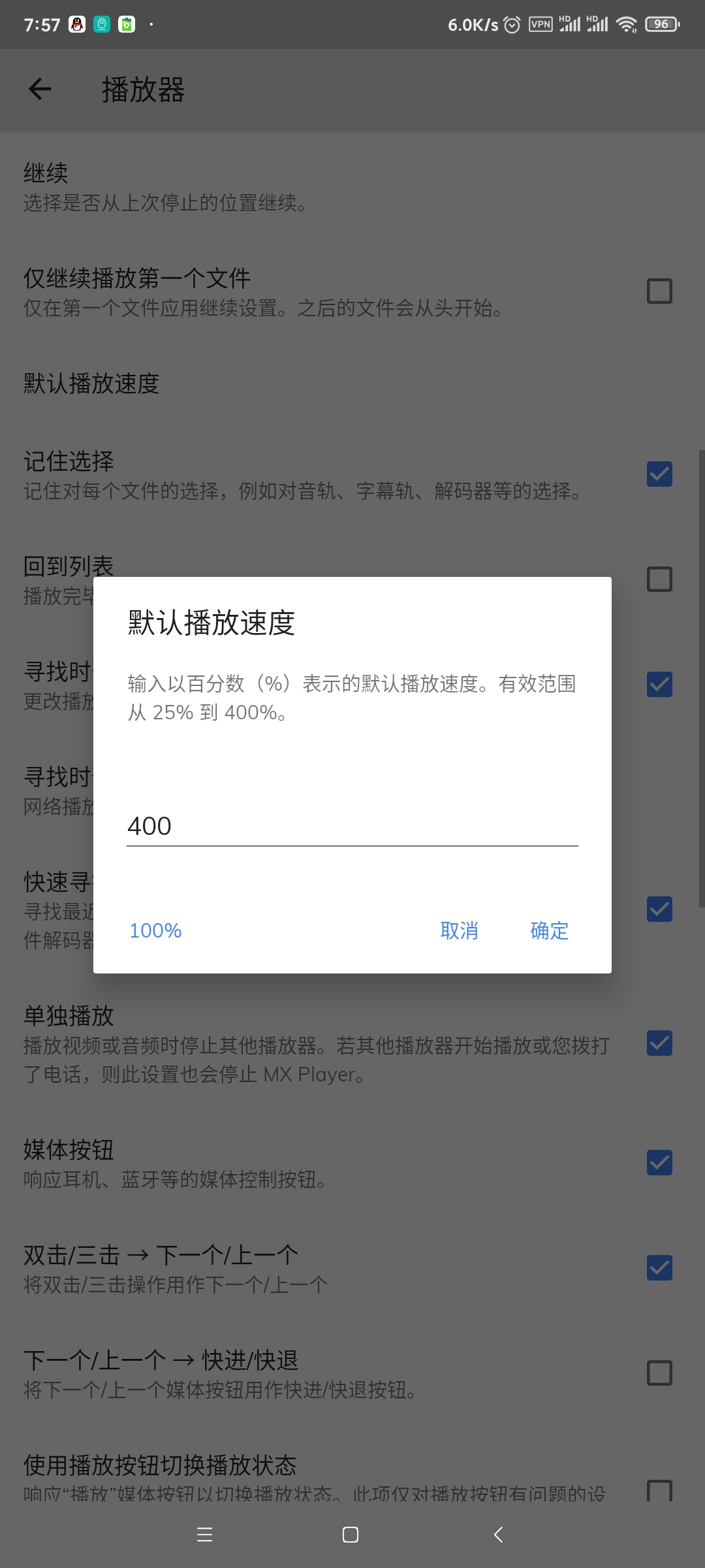全屏切换也要重新缓冲载入 切换效果不平滑?貌似可以优化下?话说点击播放后应该可以自动全屏省掉手动点全屏 懒症 倍速也希望能够记忆 重新打开就变回1倍数了 mxplayer设置就特别丰富 满足各类人需求 默认倍数