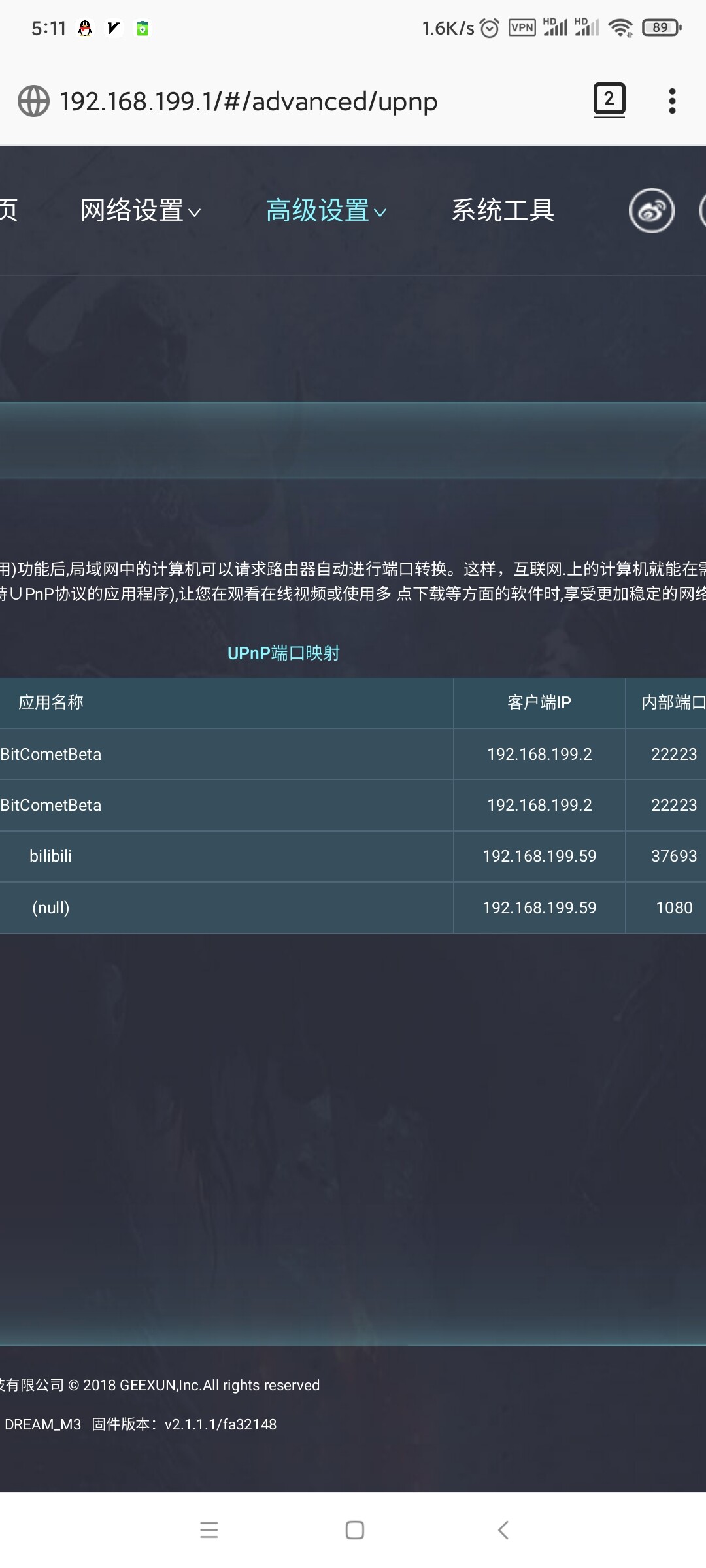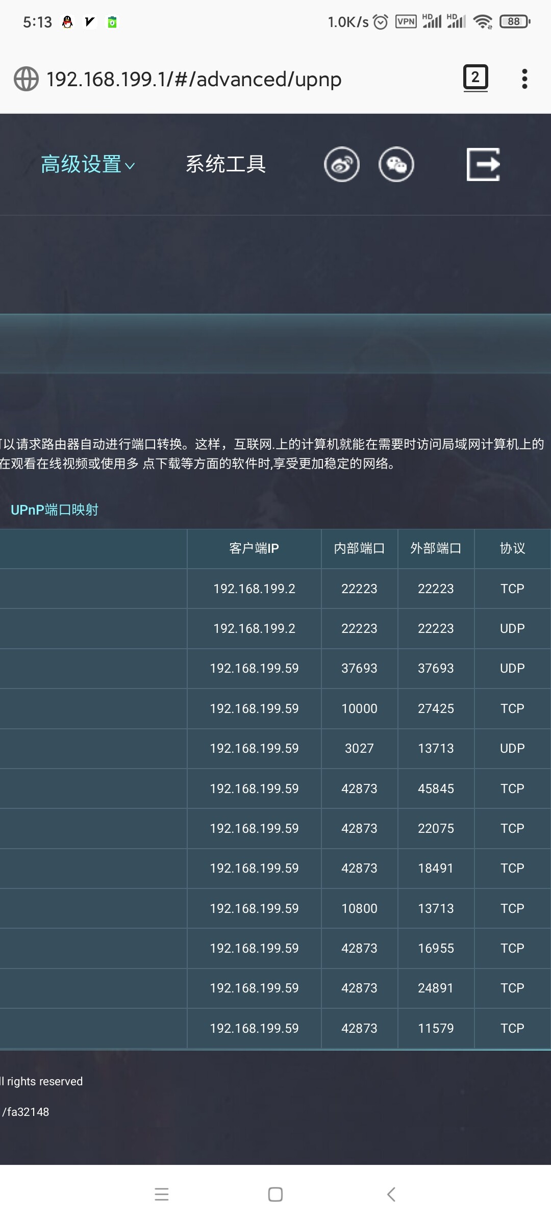 打开后 手机迅雷可以通过upnp自动添加了一批端口