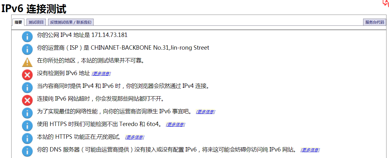 IPv6 测试 在这个页面测试一下ipv6是否正常。
