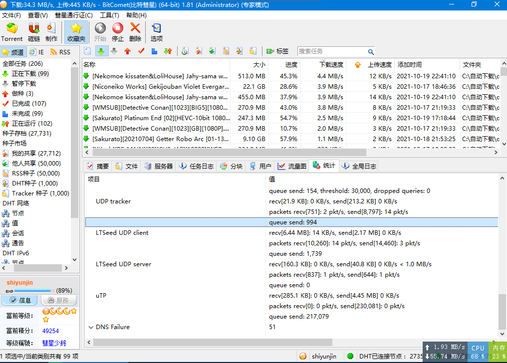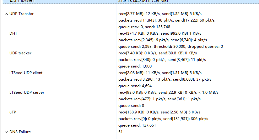 队列上限这个之前有提过,超过多少队列直接丢弃,目前只有DHT上做了,在队列用尽后,则丢弃一切从远程连入的DHT请求