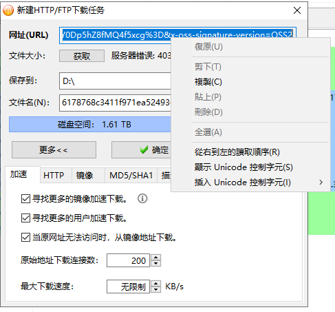并且使用镜像网址的时候不支持对镜像网址多线程下载,所以还是能修改原始地址URL比较好