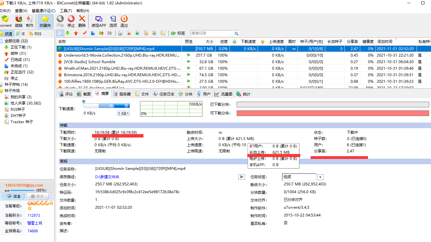 但是有时候需要关闭BT软件,进行系统重启的操作。重新开启软件后,需要重新开启分享率未达成200%的任务。我一共有250多个已经完成下载的BT任务,要直接找到某个分享率未达成200%的任务还是有点费事的。