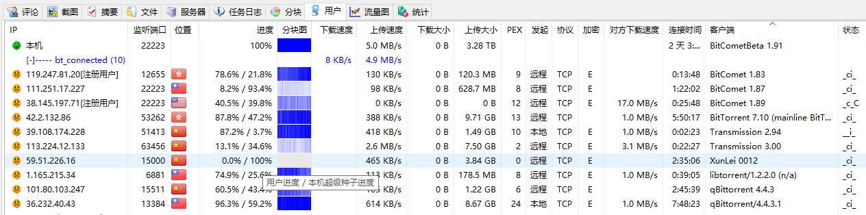 然后还有你作为长效种子上传时候,对方请求(下载方发送我要下载的数据包)到你产生的下载速度。包括正常BT协议用户列表的connect产生的开销,应该都没单独显示出来,只显示在全局速度里面,就会这样有几十KB可能看起来不见了