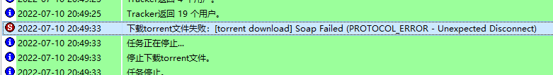 下载torrent文件失败:[torrent download] Soap Failed (PROTOCOL_ERROR - Unexpected Disconnect)