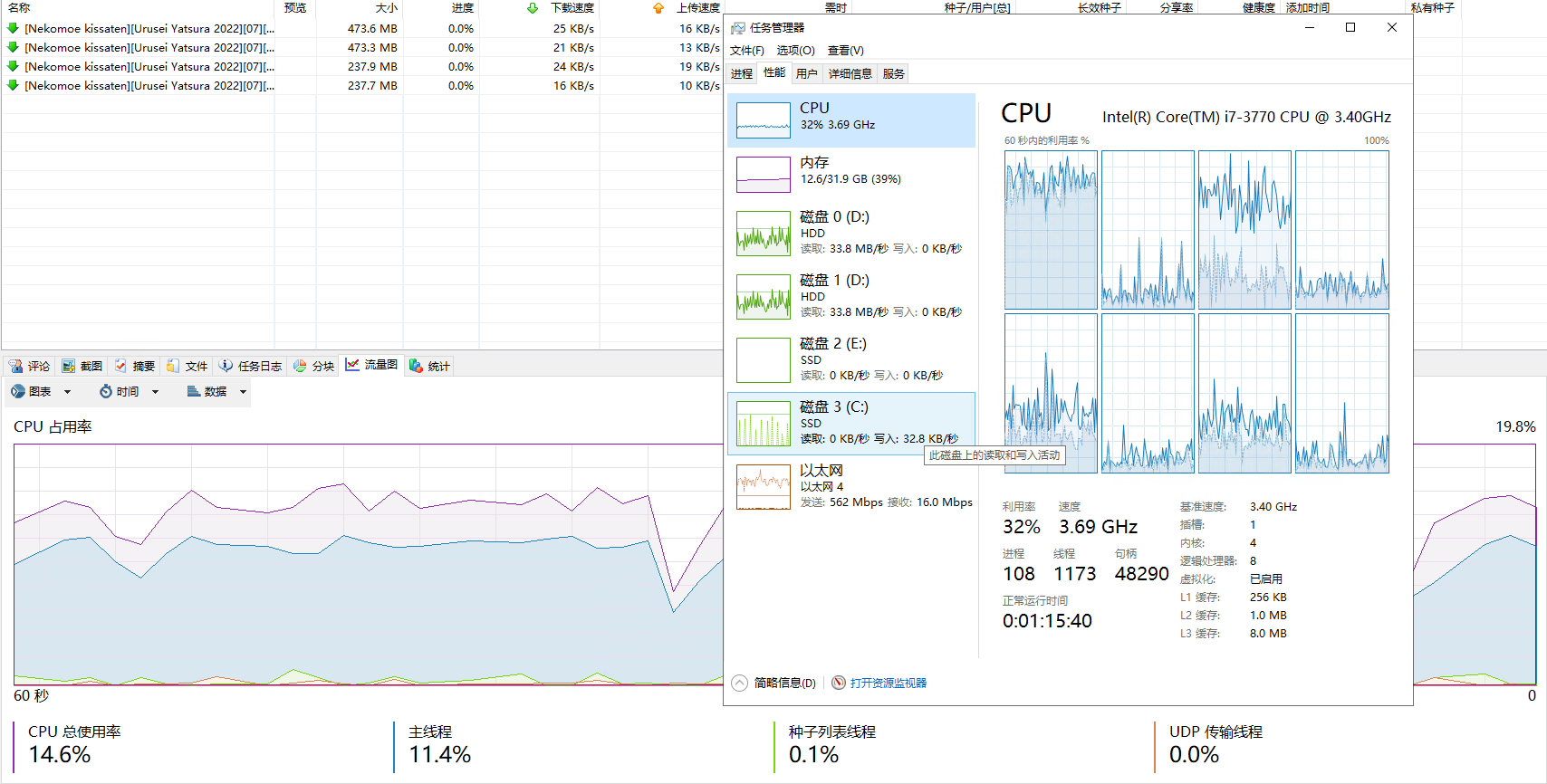 还有UTP的上传速度优化和BT任务主线程实现CPU多线程利用。。不然主线程卡了连1Gbps都跑不满