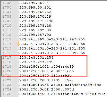 而看上去这 1718 条正好对应的是 IPv4 的合并结果,请确认一下是否有统计 IPv6?