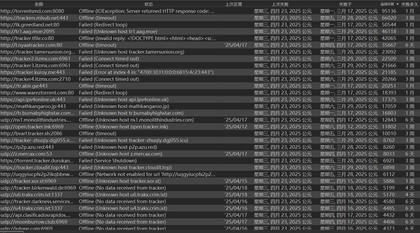 我可以清楚的知道我添加的 Tracker 效果如何,一个种子更依赖 Tracker 还是更依赖 DHT。