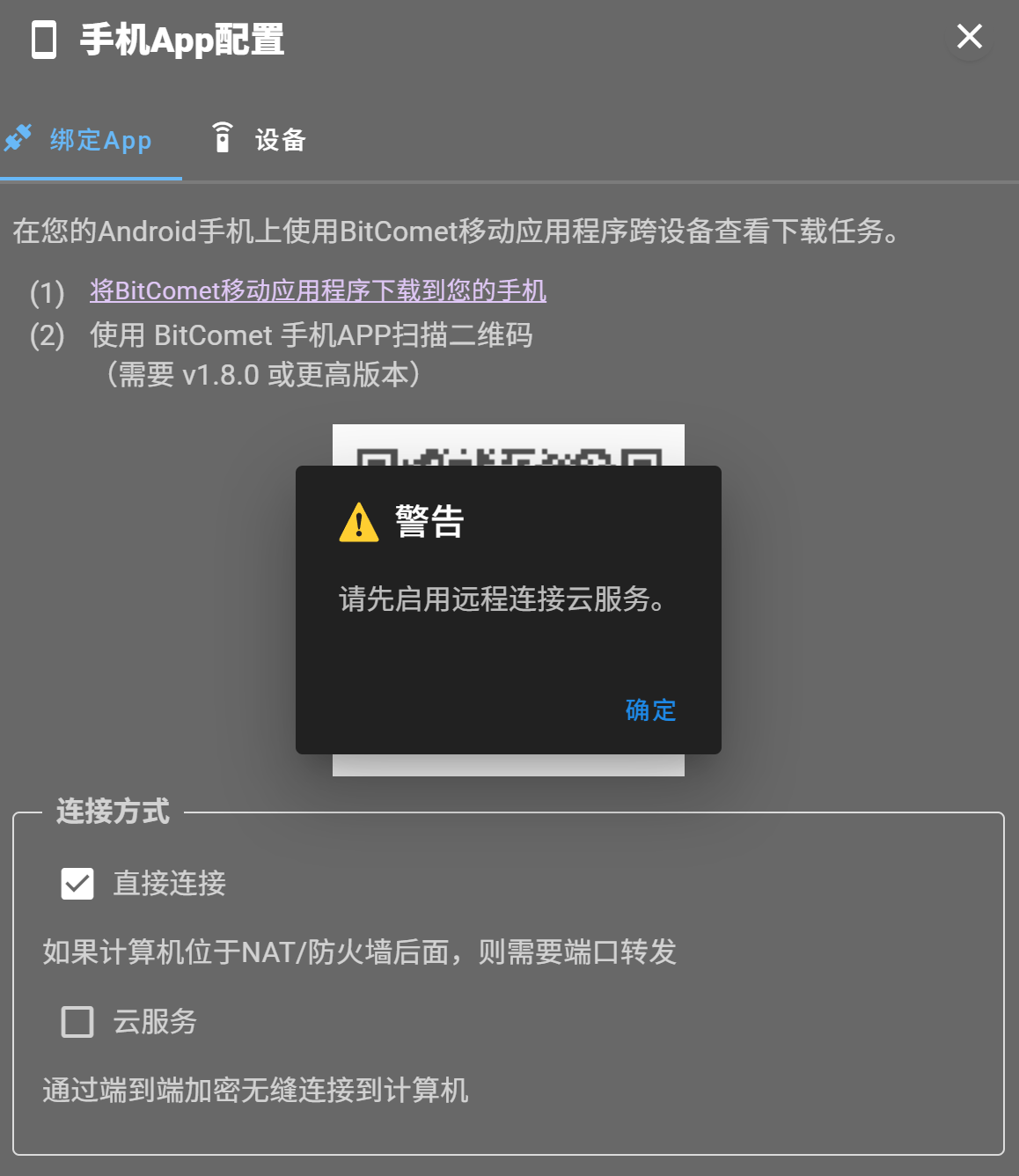 我要在禁用云服务的时候实现直接连接,现在是必须开启云服务才能生成直接连接的二维码,,,感觉说的挺清楚了,那来个动态图吧