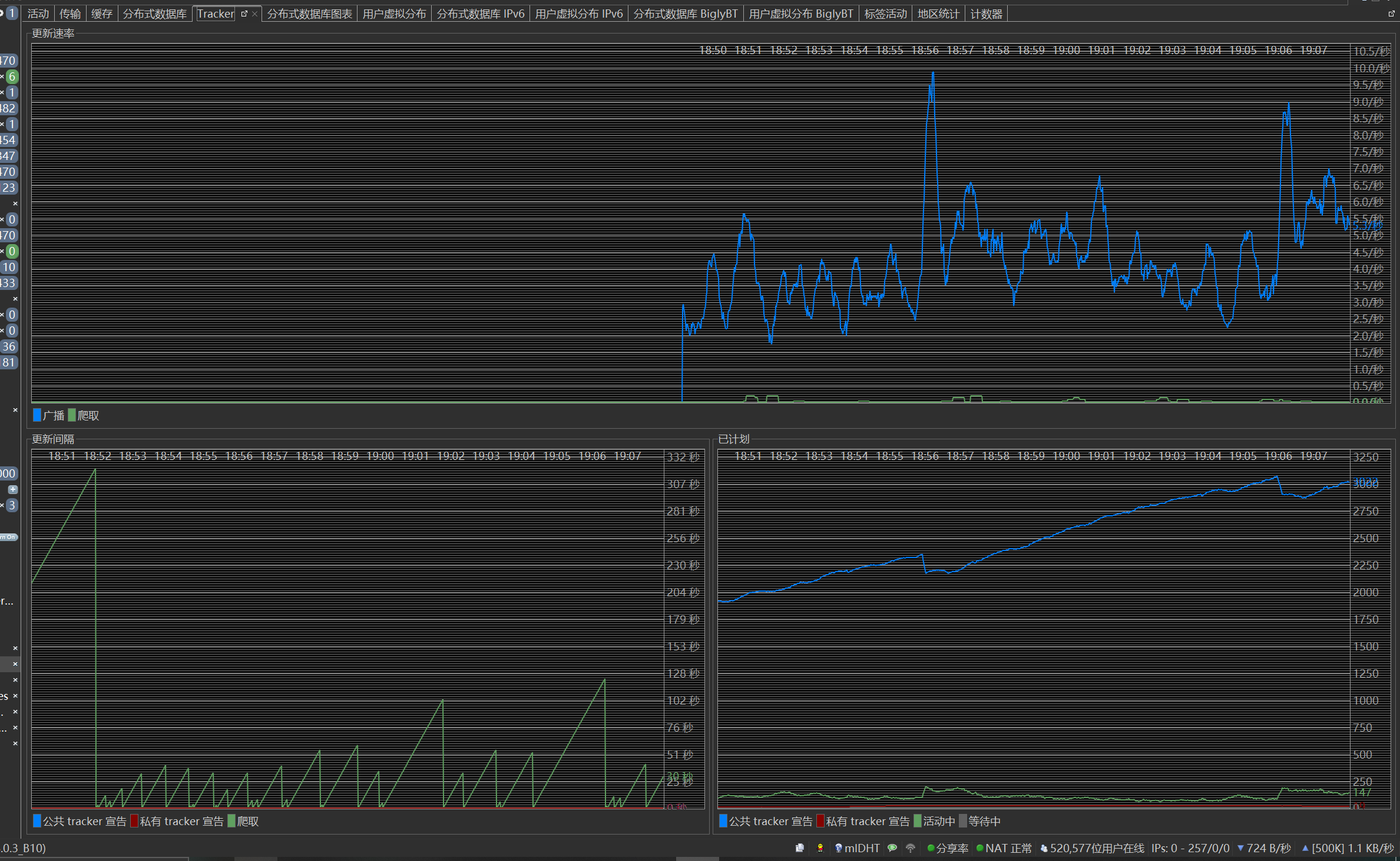 对 Tracker 的压力其实也还好,并且间隔也完全遵守 Tracker 的要求,我这里添加了 181 个 Tracker,共 470 个种子。