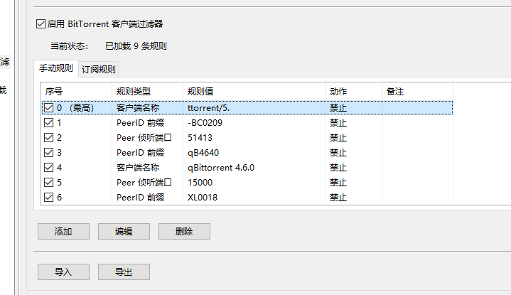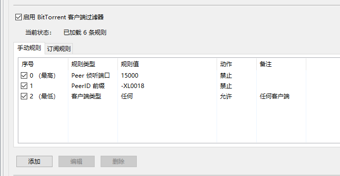 加载的client_filter.json 文件就3个,但是比特彗星检测到6个,看起来是手动规则自动冒出一份到订阅规则里面去了?