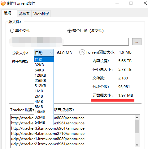 话说分块也可以考虑升级到128M和256M了,让种子文件大小控制在1MB内,一些发布站不支持大于1MB的种子