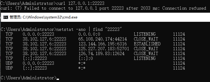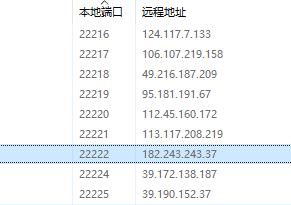 以上依旧是猜测的结果,因为Windows本身会自动跳过22223当前软件监听端口,上方图中的22223其实是远程访问本地,任务管理器没显示来源方向而已,本地发起请求的时候使用的临时端口会跳过已监听