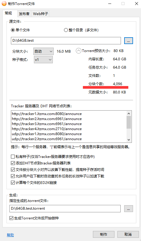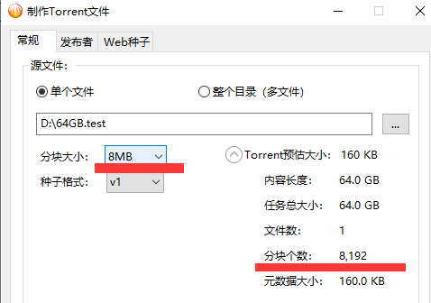 界面改进:制作torrent文件时支持128MB和256MB分块