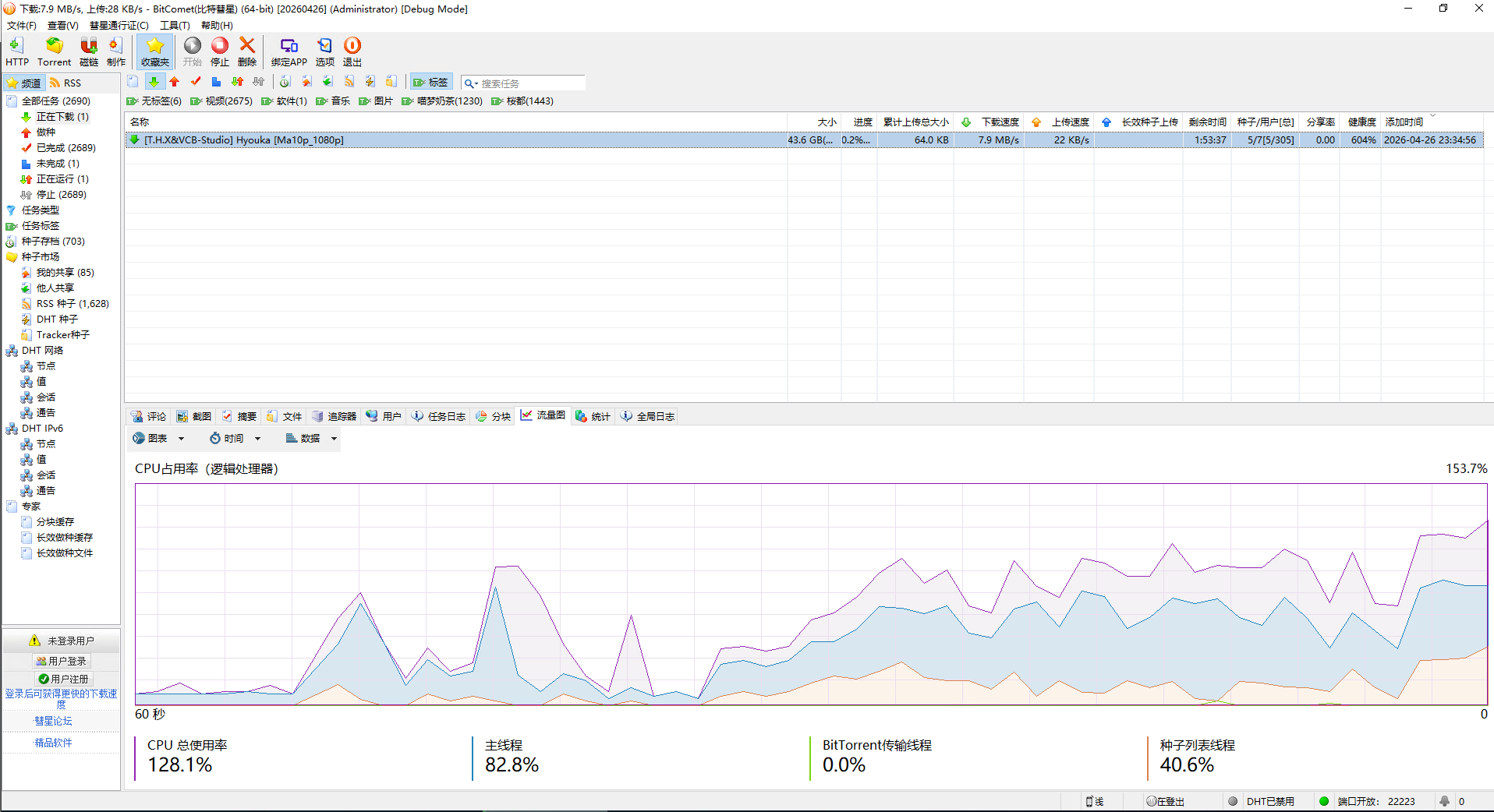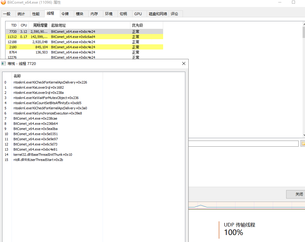 界面改进:流量图里的CPU使用率统计增加“BT传输线程”类别