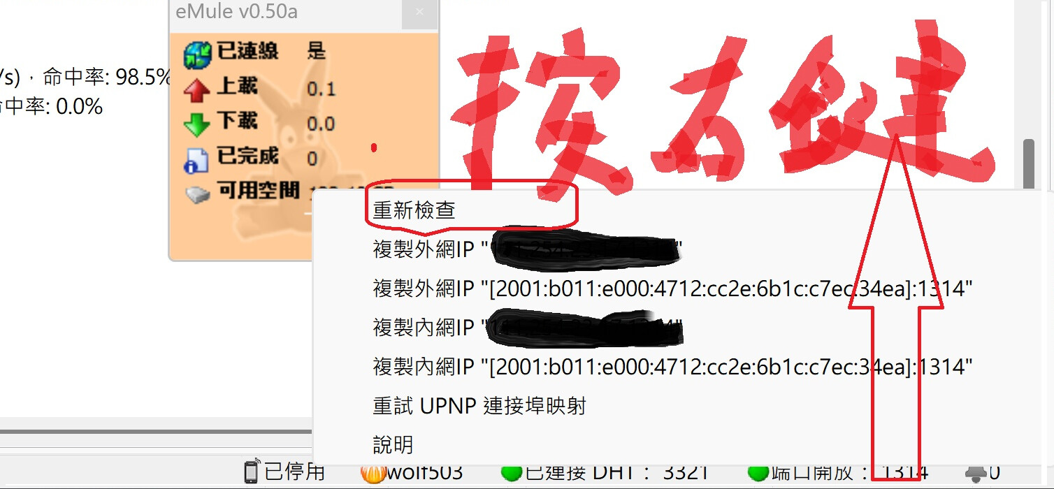 重启BC,重启电脑都试过了。ipv6地址当然是电脑的ipv6地址,用ipconfig确认过。端口也用tcpview查看过是BC监听的。