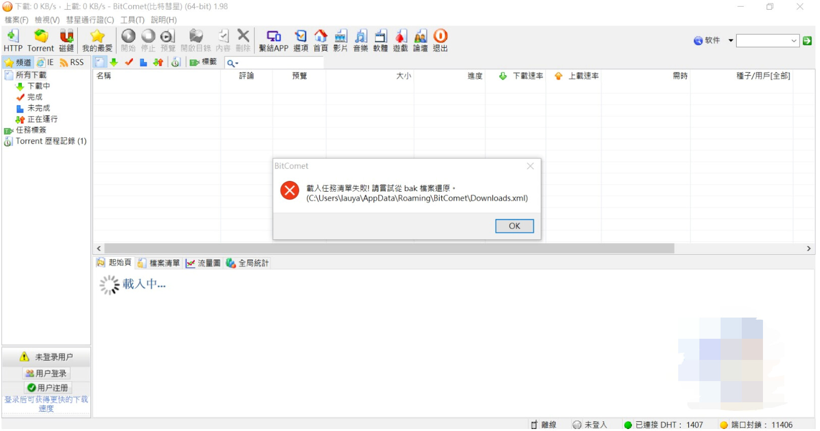 用了其他大神说:“可以在 %appdata%/bitcomet/ 目录里查找最近7天的任务列表备份文件。退出彗星后,Downloads.xml.20220713.bak 改名为 Downloads.xml 再重启彗星。”