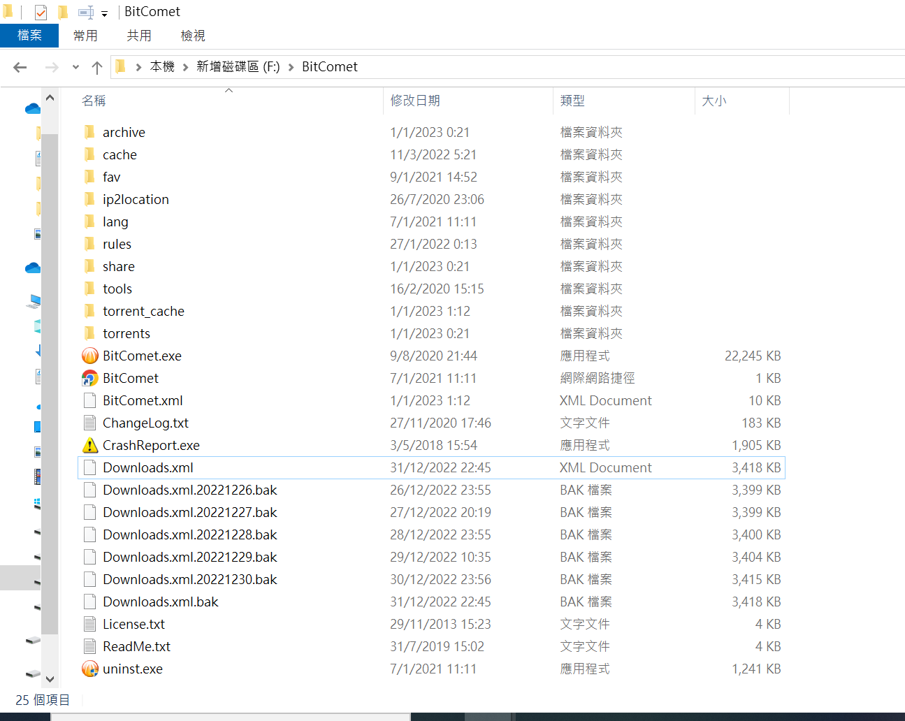 而且最近我也有下載一些種子,但自從我的Bitcomet崩潰後,最新的只到Downloads.xml.20221230.bak,而沒有2023年的,這是為什麼?