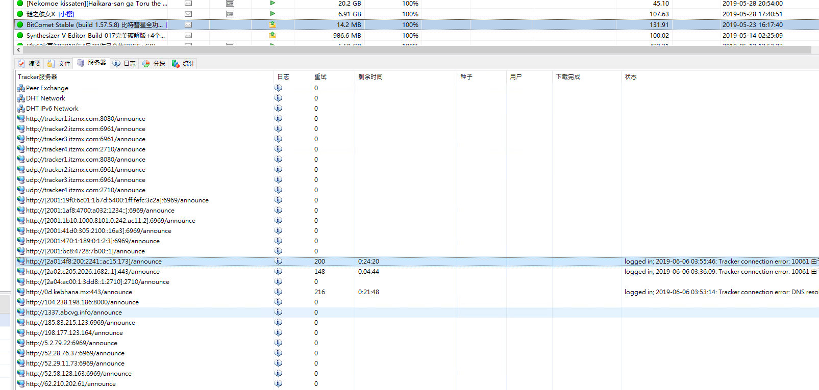 bt已经点击任务停止多天,部分tracker没有彻底停止