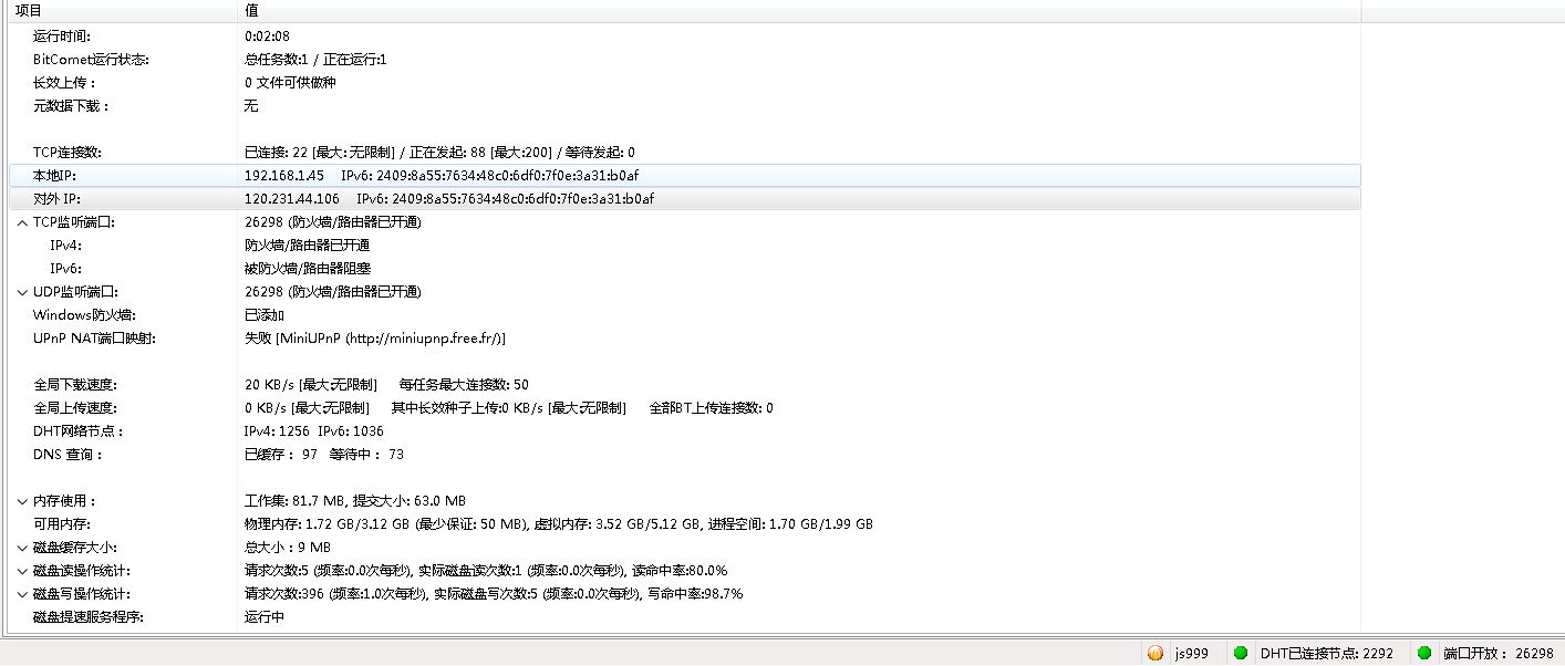 比特彗星官方服务器,支持ipv4和ipv6,ipv6被阻塞需要你进入光猫设置防火墙为低