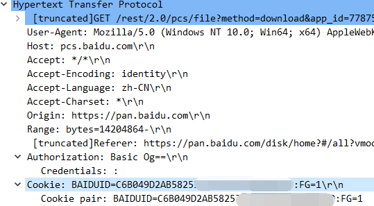 这是IDM发起的,包含了完整的cookie头部等信息传递,正常下载百度网盘的文件