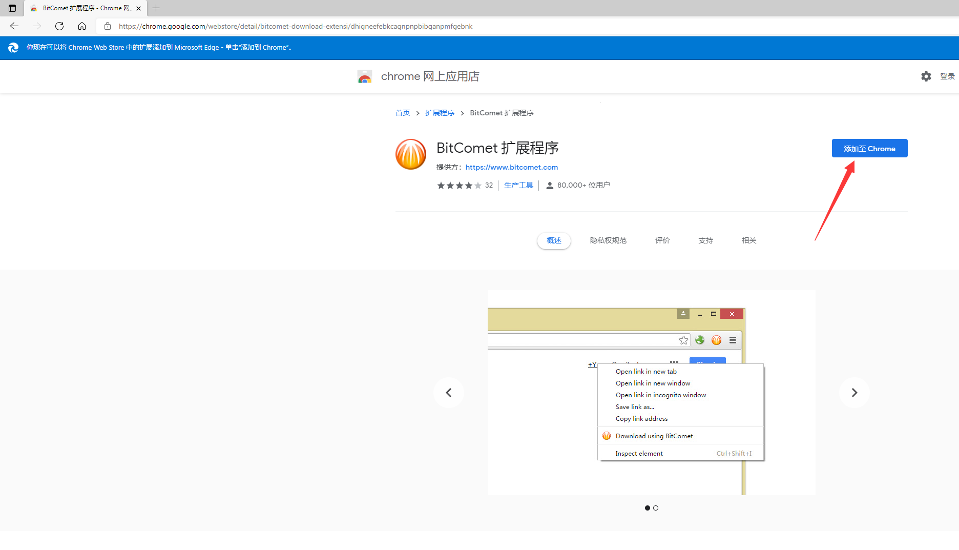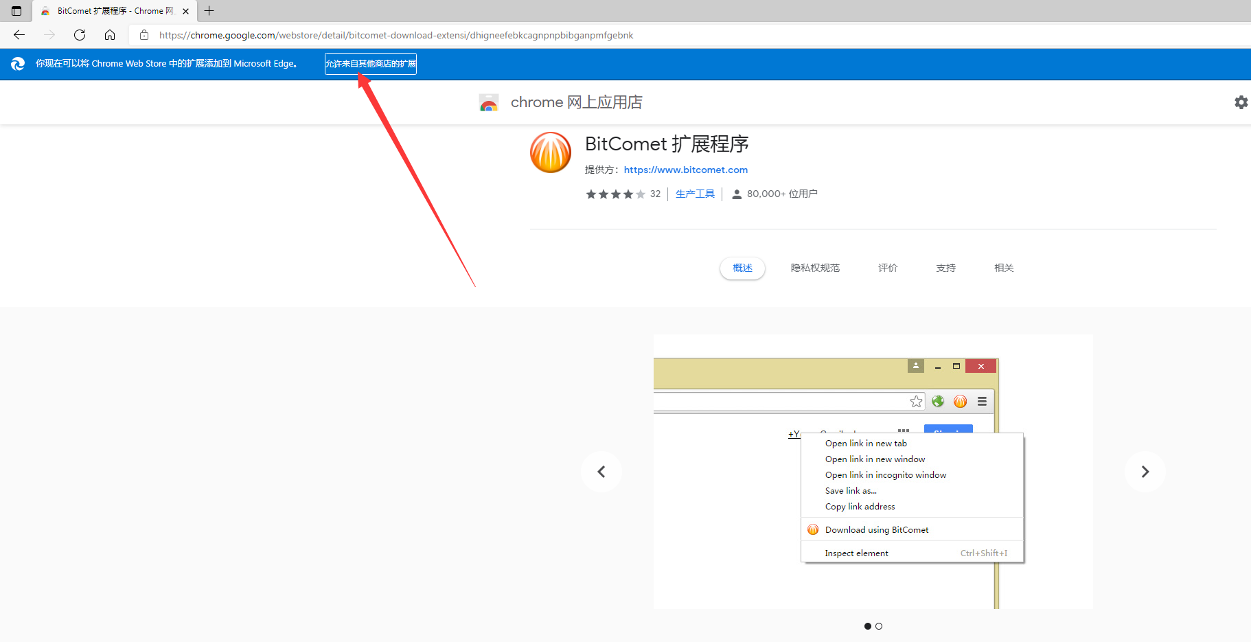 chrome浏览器把BitComet 比特彗星插件crx文件传递到微软edge上安装的办法
