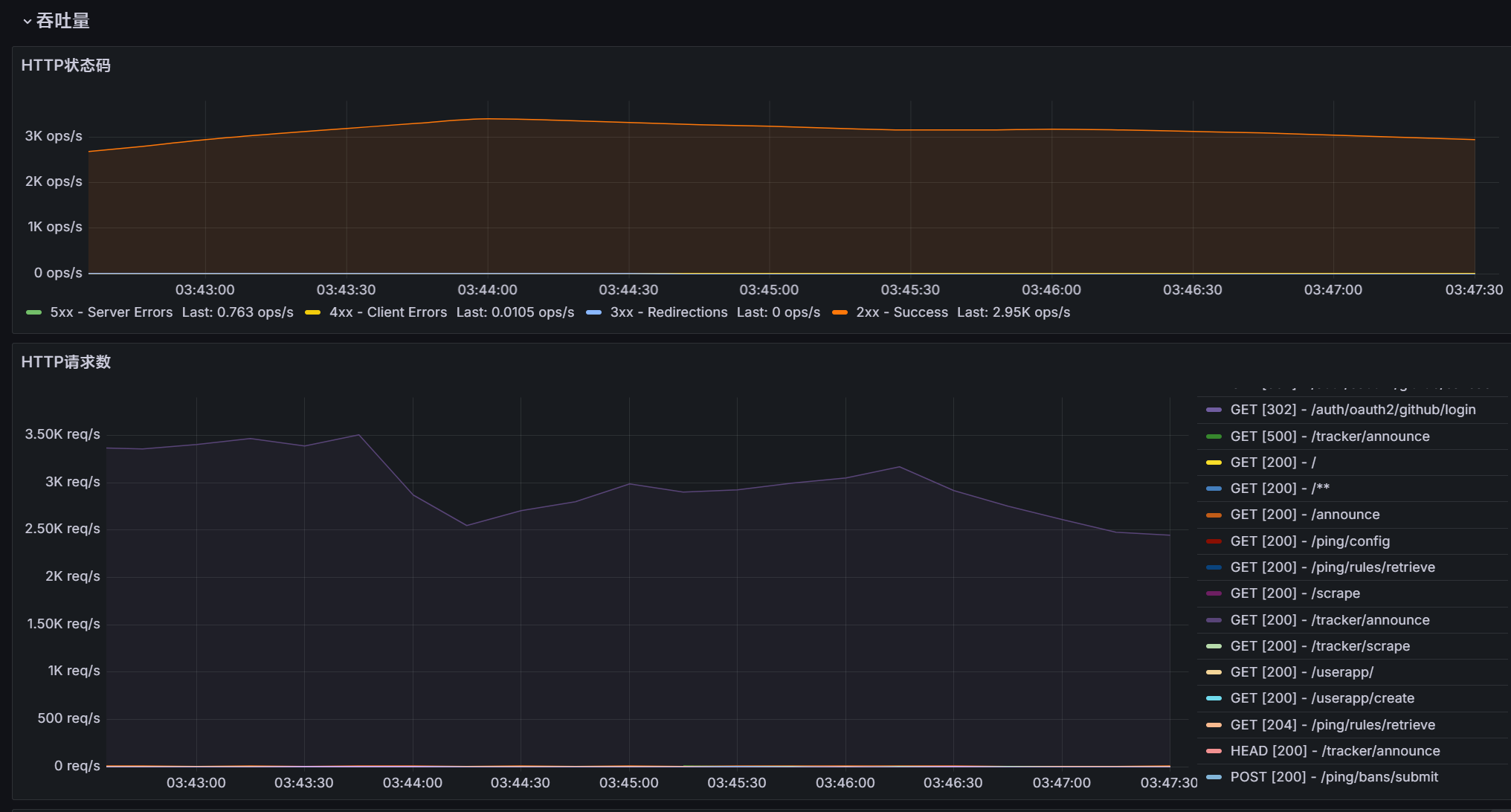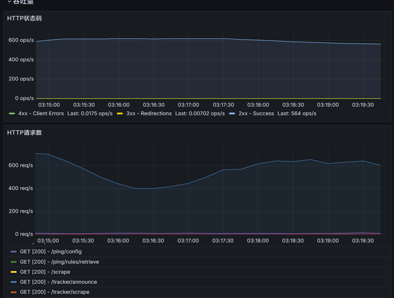 现在 CPU 占用在 30-40% 的样子。优化效果已经超出预期了。Tracker 上目前注册了 50w 的 Peer,登记了 35w 的 Torrent,目前平均 800 qps。